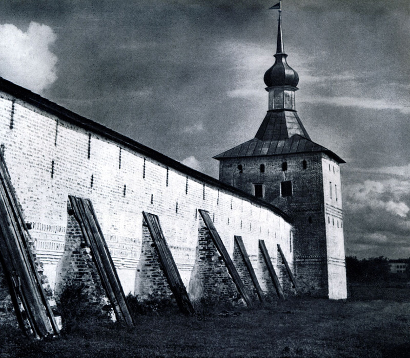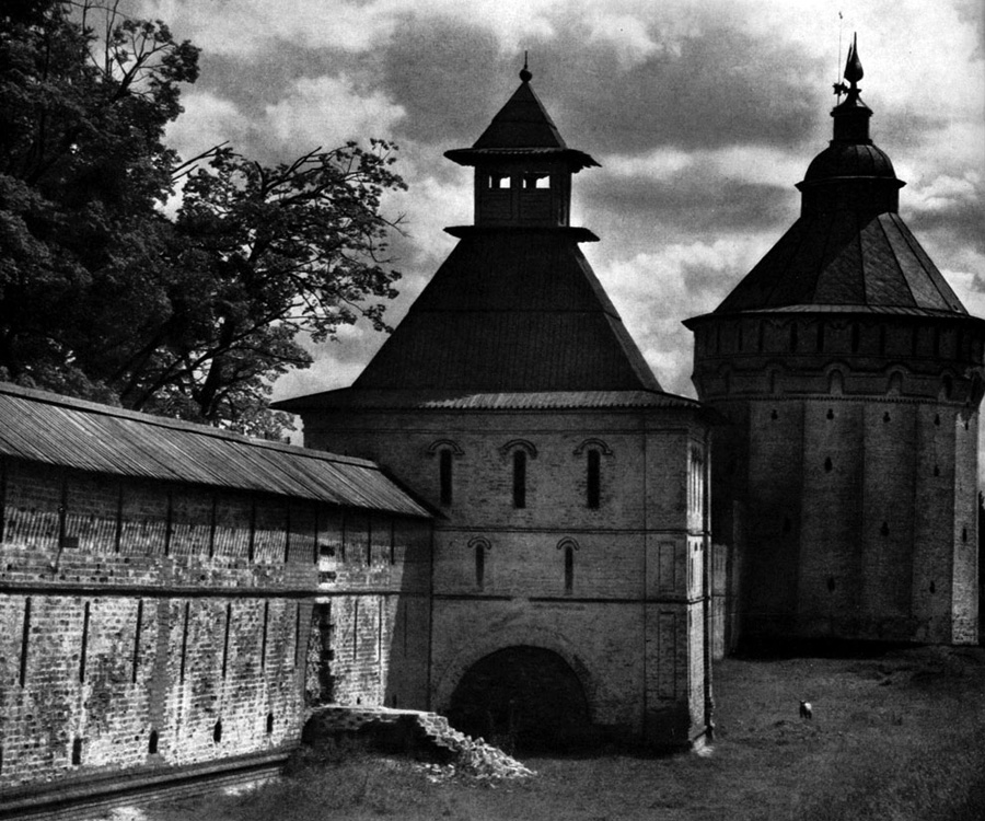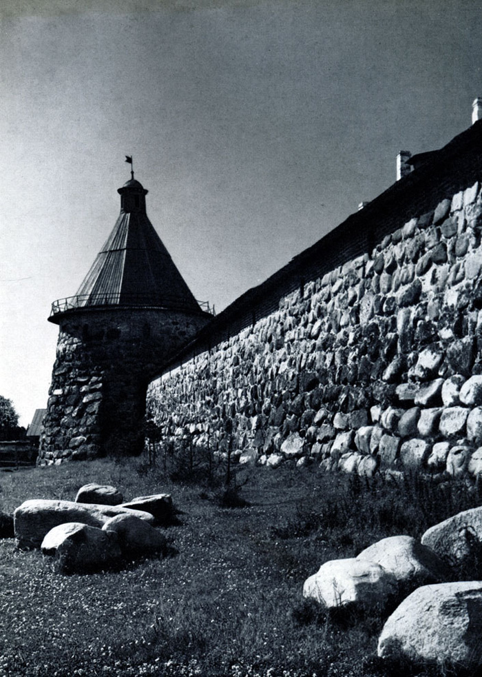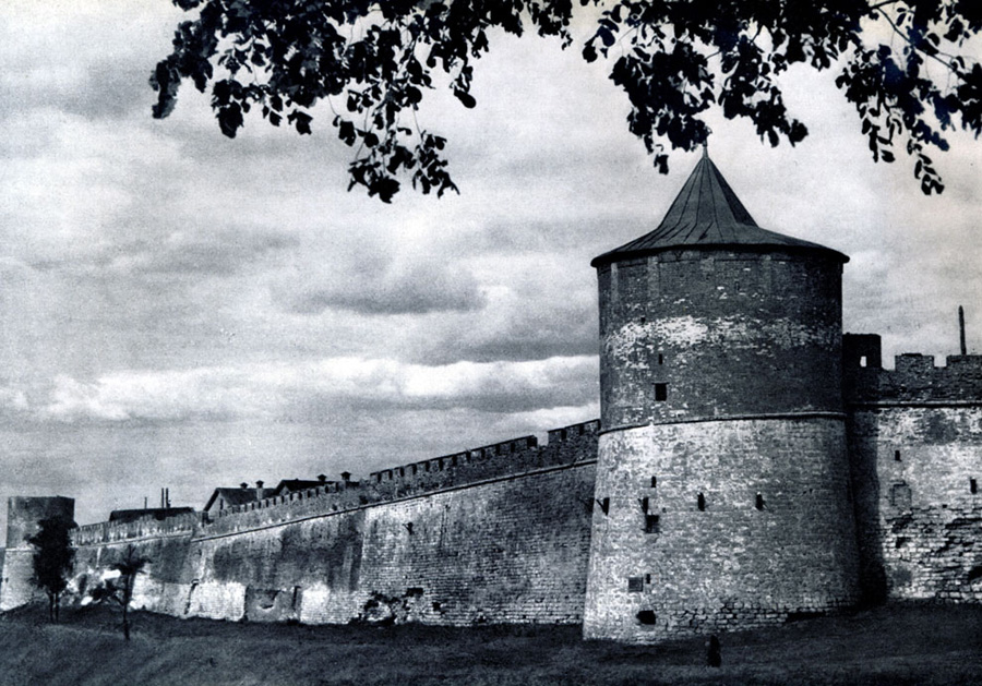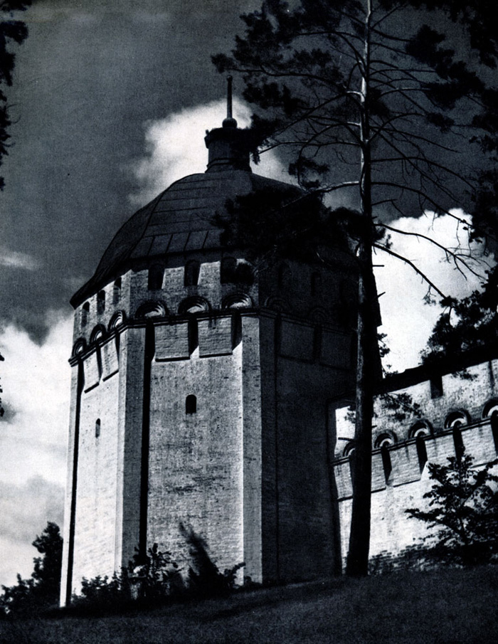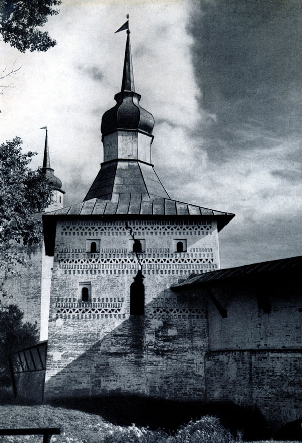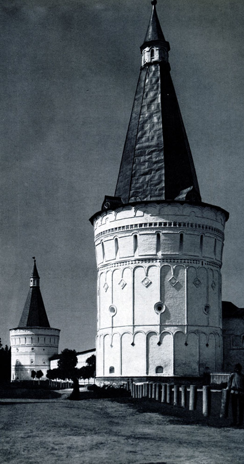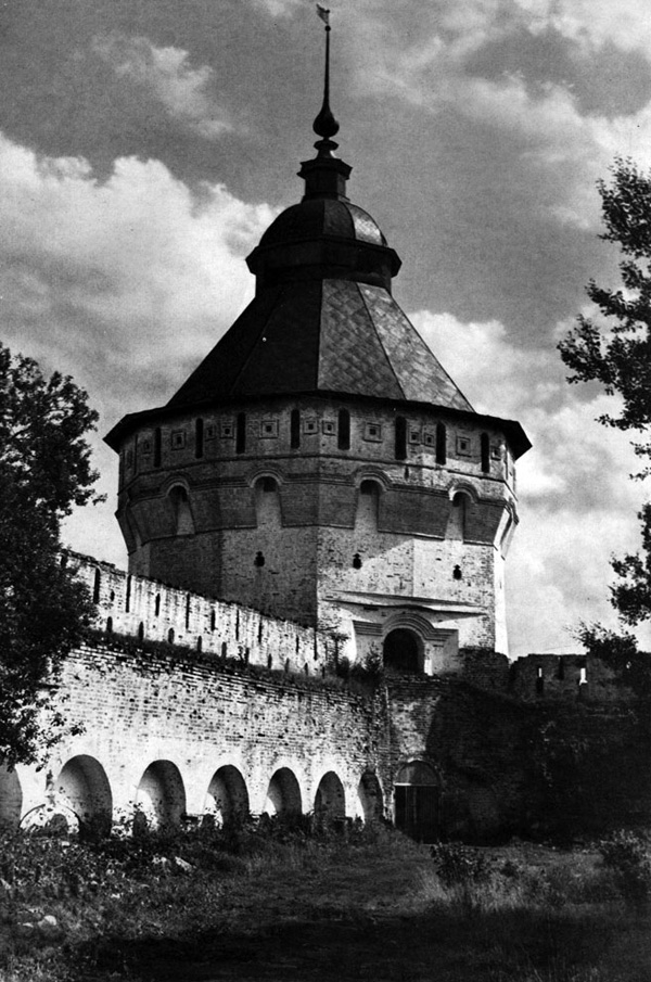 Конечно, не все оборонительные сооружения древней Руси сохранились до наших дней. Большинство из них уже давным-давно исчезло с лица земли. Однако те, которые остались, являются великолепными памятниками архитектуры. Своей суровой лаконичностью нас поражают, например, каменные твердыни в Изборске — верном порубежном страже вольного Пскова, названном врагами за неприступность «железным городом», а также в Порхове и Копорье — пограничных укрепленных пригородах «Господина Великого Новгорода», не раз обрекавшихся неприятелем на разрушение. Могучей силой и вечной нерушимостью веет от стен и башен величественного Кремля Москвы — крепостного первенца молодого Русского государства, вступившего при Иване III на международную арену. Грандиозна и крайне своеобразна Смоленская крепость, которую русский народ окрестил «непобедимым укреплением своего отечества». Словно сказочные города вырастают из земли стены и башни Соловецкого, Троице-Сергиева и Кирилло-Белозерского монастырей — «великих царских крепостей», соединяющих в себе техническое совершенство исполнения и изумительную, нигде не повторимую красоту.