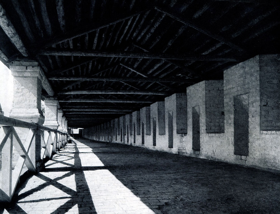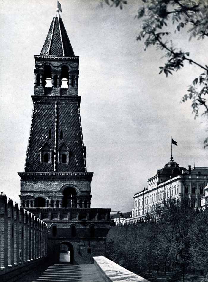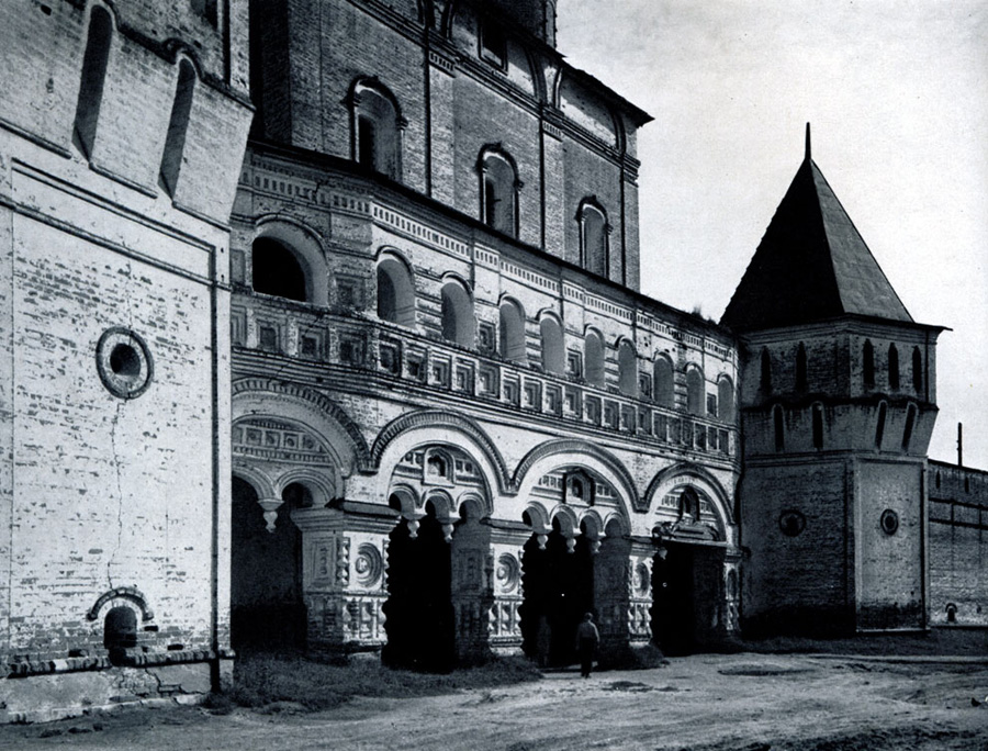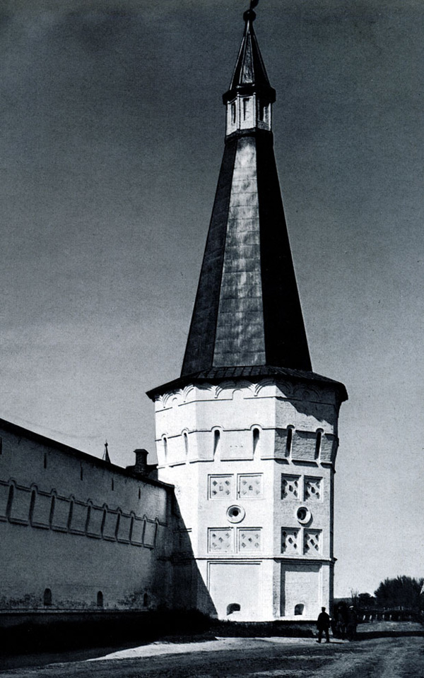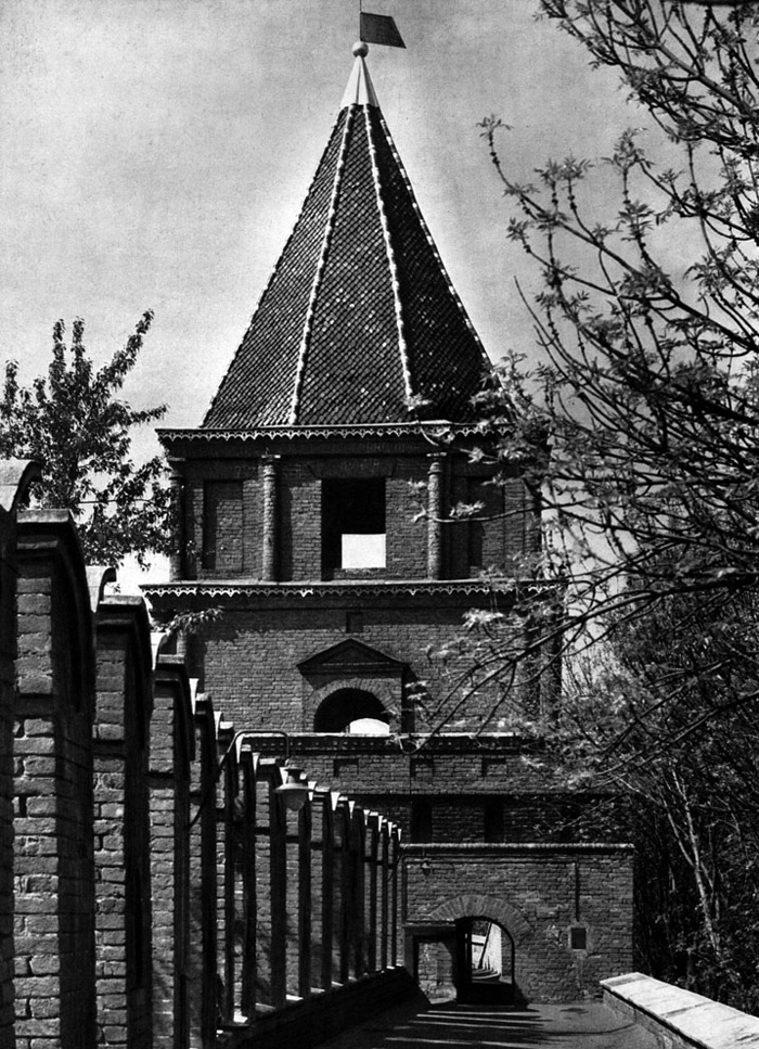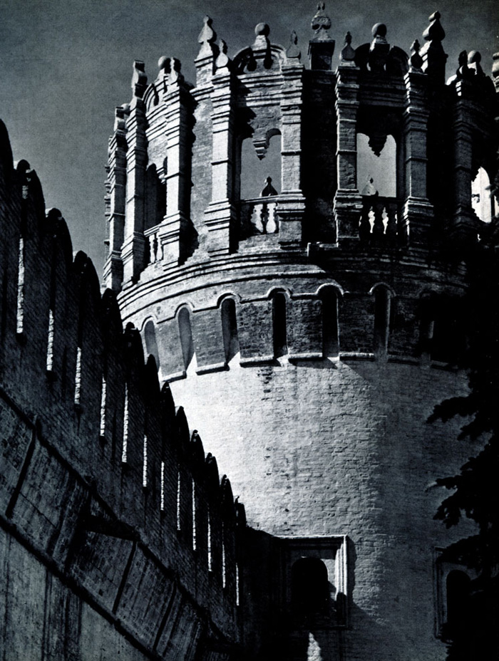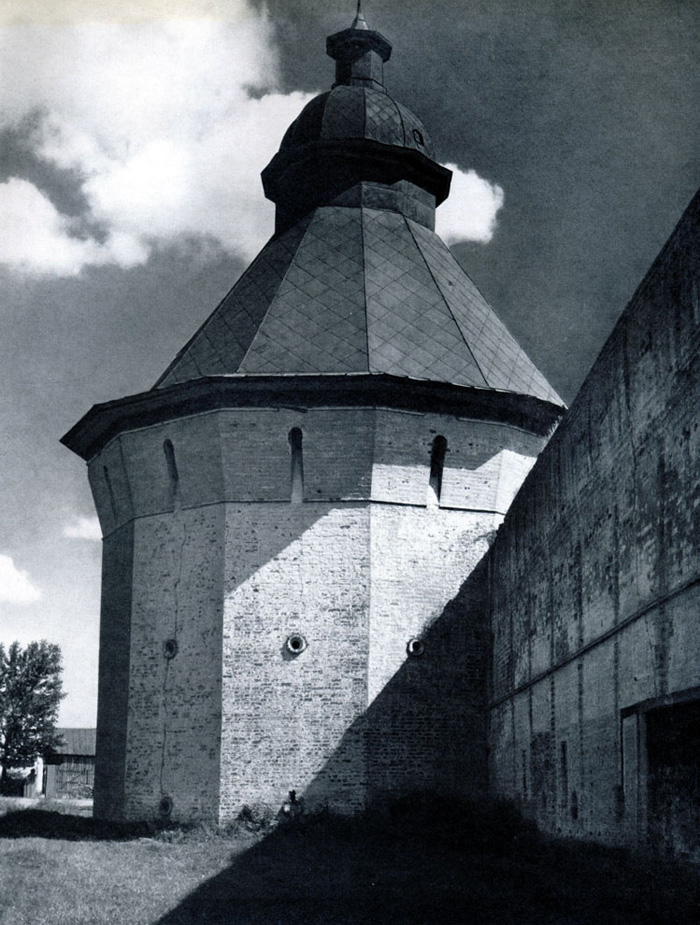 Конечно, не все оборонительные сооружения древней Руси сохранились до наших дней. Большинство из них уже давным-давно исчезло с лица земли. Однако те, которые остались, являются великолепными памятниками архитектуры. Своей суровой лаконичностью нас поражают, например, каменные твердыни в Изборске — верном порубежном страже вольного Пскова, названном врагами за неприступность «железным городом», а также в Порхове и Копорье — пограничных укрепленных пригородах «Господина Великого Новгорода», не раз обрекавшихся неприятелем на разрушение. Могучей силой и вечной нерушимостью веет от стен и башен величественного Кремля Москвы — крепостного первенца молодого Русского государства, вступившего при Иване III на международную арену. Грандиозна и крайне своеобразна Смоленская крепость, которую русский народ окрестил «непобедимым укреплением своего отечества». Словно сказочные города вырастают из земли стены и башни Соловецкого, Троице-Сергиева и Кирилло-Белозерского монастырей — «великих царских крепостей», соединяющих в себе техническое совершенство исполнения и изумительную, нигде не повторимую красоту.