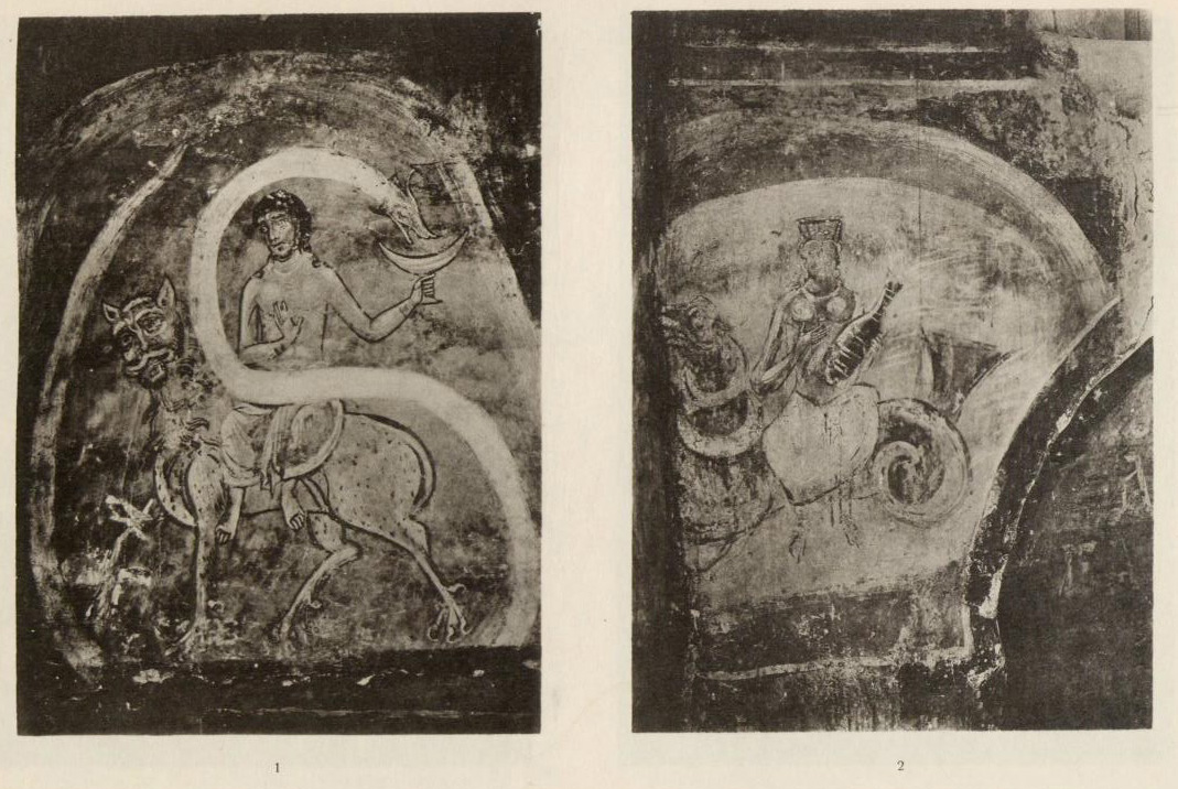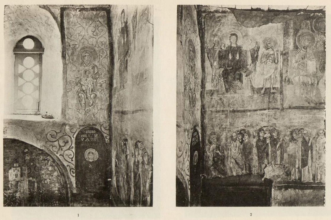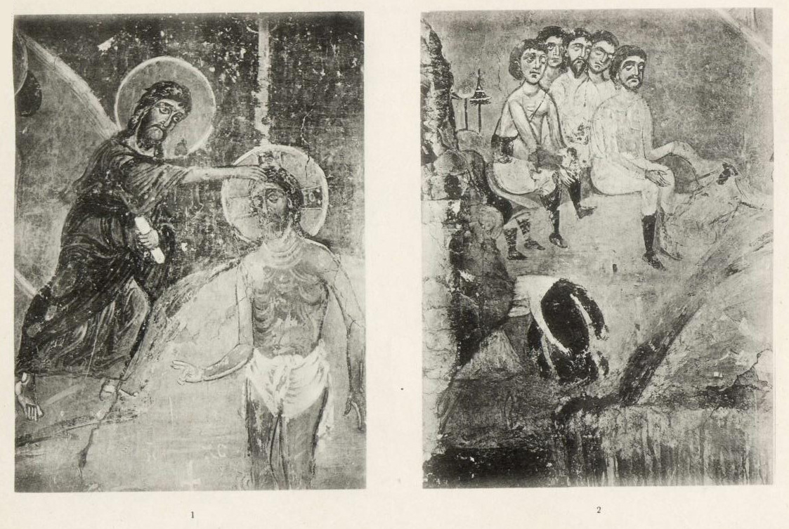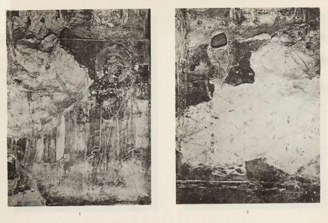 Таблица XLVII. 1. Остатки композиции в южном коробовом своде 2. Фрагмент композиции Тайной вечери в коробовом своде