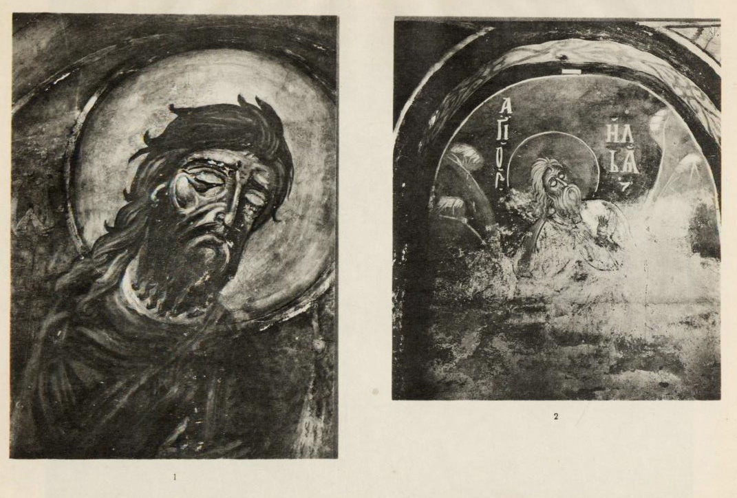 Здесь же, в Нередицах, мы встречаем древнейшее изображение Ильи, питаемого вороном, — композиции, обычной в храмах Сербии XIV в. и особенно на Афоне, в его многочисленных трапезах.