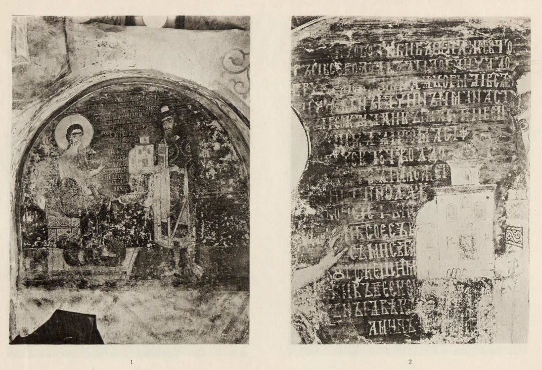 Таблица LVI. 1. Христос и князь Ярослав Владимирович, строитель храма 2. Надпись – деталь предыдущей композиции