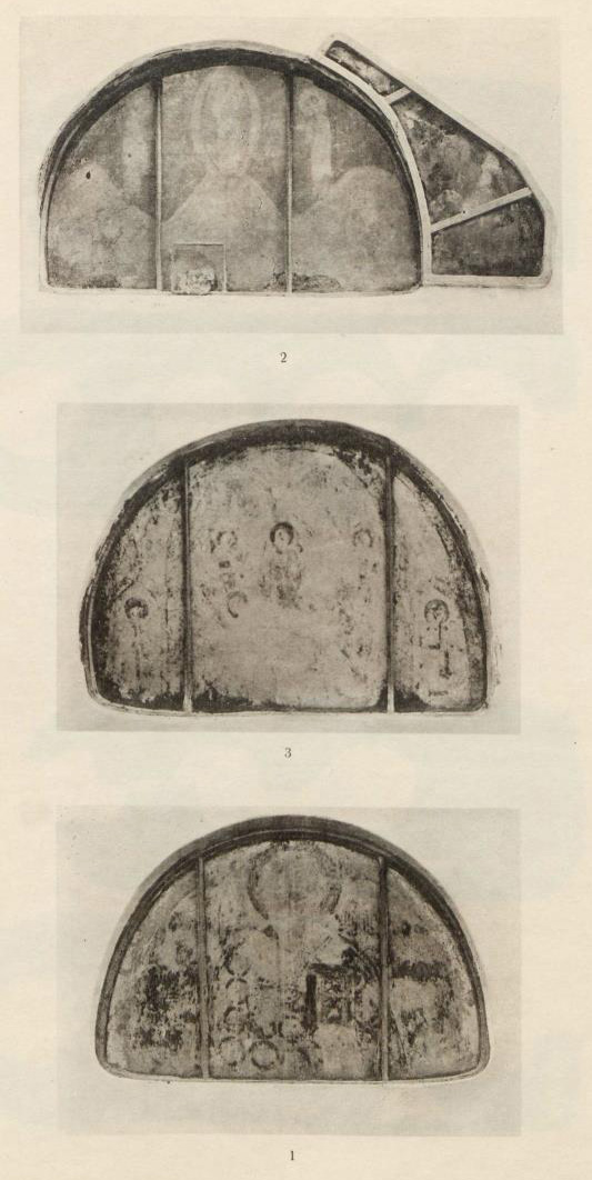 Таблица LXXIX. 1. Николай Чудотворец – наружная фреска 2. Преображение – наружная фреска 3. Успение – наружная фреска