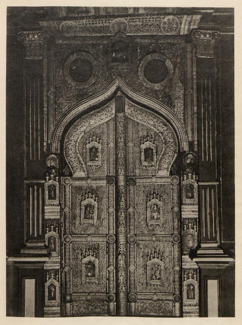 Не меньший интерес представляет собой и композиция коихи жертвенника с изображением известной сирийской легенды о молении св. Алексия Человека Божия нерукотворенному образу Богородицы в Эдессе,— являющаяся редчайшим сюжетом.