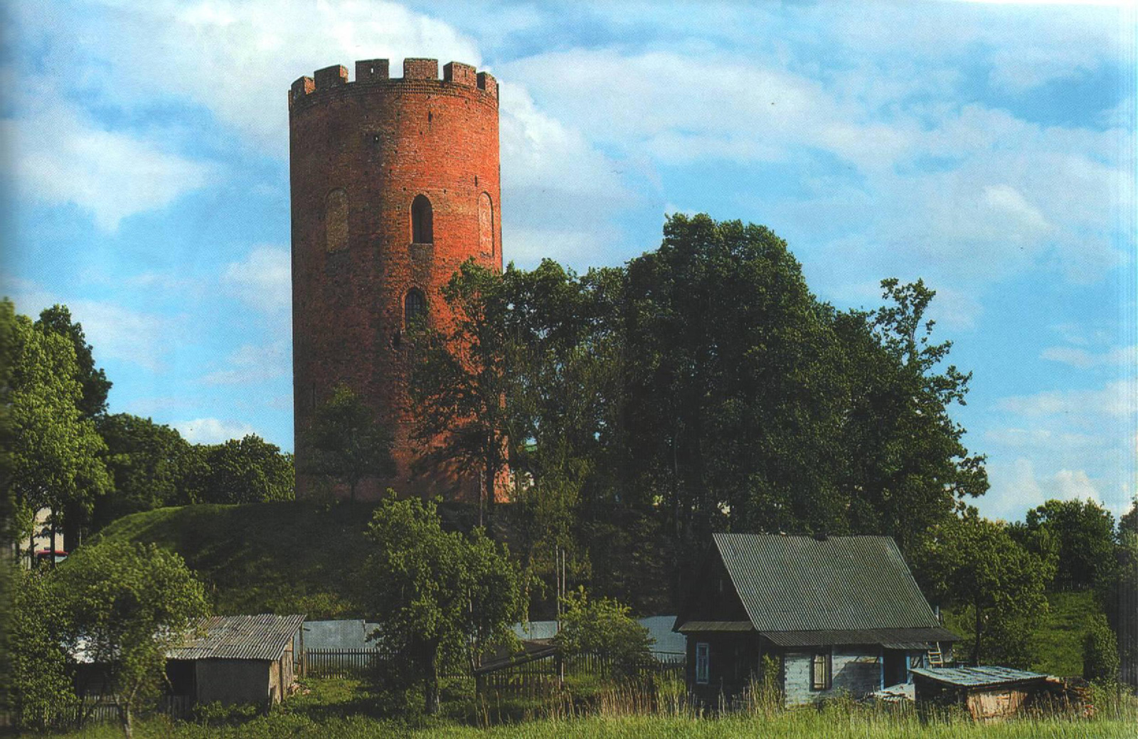 Исправник не смог выяснить, когда и зачем построен «столб, или башня», которая издавна находится в Каменце, но узнал, что когда в местечке была Магдебургия, то этот столб в качестве герба был изображен на печати. Местные жители излагали разные версии. Одни говорили, что башня построена неким удельным князем, чтобы заключить в ней за преступления своего родного брата, и другая такая же якобы была построена в Каменце-Подольском или в Хелме для ареста второго преступного брата. Другие считали, что во времена проживания в здешних местах ятвягов башня применялась для обороны и в ней могли помещаться несколько сот человек на одном этаже, а таковых было три. «Около той башни есть замок, с дерева выстроенный на высыпанном валу, с одной стороны рекою и с трех сторон рвами обведенный, и во время сражений, когда замок был осажден, то гарнизон, защищающий местечко, в подобных строениях помещался и оттоль через окошки бросал нужные для спасения себе снаряды». В докладе исправника содержится версия происхождения названия Беловежской пущи от названия этой башни, некогда звавшейся Бела Вежа из-за того, что она была побелена известью, «чего и ныне остались на ней следы».