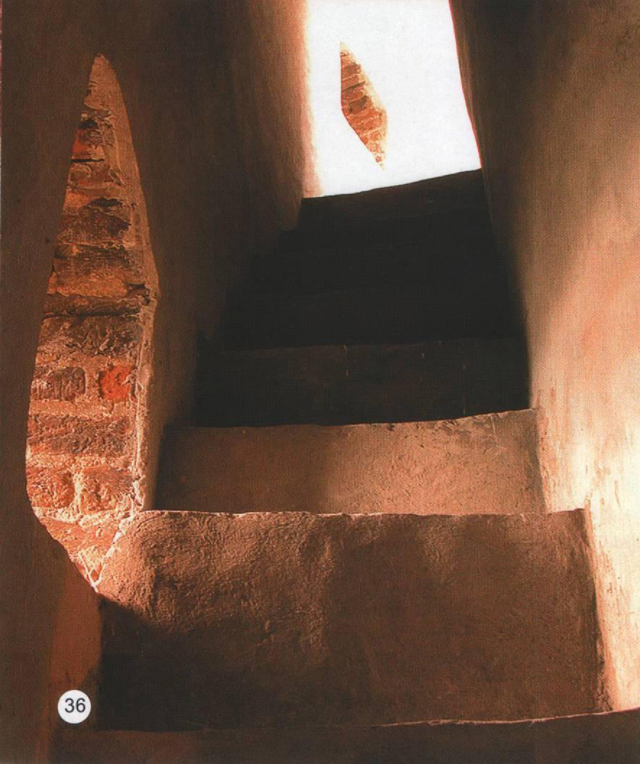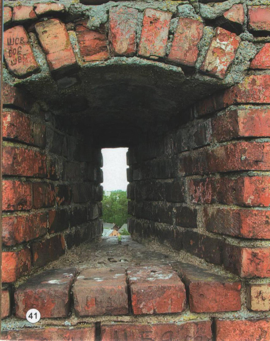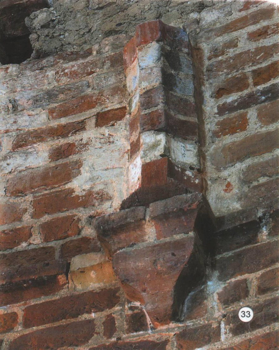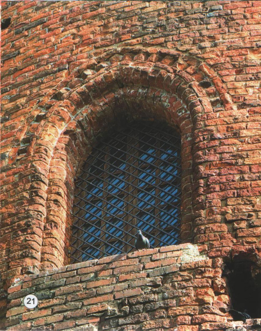 Башни, подобные Каменецкой, были также в Берестъе и Гродно; две сохранились возле Холма, однако они значительно скромнее Каменецкой по размерам и архитектурно- строительным качествам. В кладке Каменецкого столпа, в отличие от Холмских, не применялся природный камень. Для сооружения потребовалось почти полмиллиона штук кирпича размером около 26,5x13,5x8 см, темно-красного и желтоватого цвета. Для лучшего сцепления с раствором кирпич имеет на одной плоскости продольные борозды (как будто от пальцев руки). Высоким качеством отличается и кладка на известковом беловато-сером растворе, толщина швов 2—4 см. Для связывания рядов кирпичей в них чередуются два «ложка» и один «тычок» (балтская или вендская кладка). В стенах башни за много столетий не возникло значительных повреждений от природных воздействий. Стены кверху немного утоньшаются, образуя снаружи небольшой наклон к вертикальной оси. Они не имеют никаких горизонтальных или вертикальных членений, прорезаны только окнами-бойницами, лишь в самом верху башня опоясана четырьмя рядами поребрика, В первом ярусе — две бойницы, во втором и третьем — по три, в четвертом — две и большой проем, обращенный скромным готическим порталом. Это, вероятно, древний вход, обращенный в сторону реки, к нему позже приделали балкон. В пятом ярусе четыре бойницы с расширением внутрь и наружу, а между ними плоские ниши с полуциркульным завершением, которые некогда штукатурились и белились. Ступени в стене, начинаясь с третьего яруса, выводят на верх башни с 14 зубцами, в каждом из которых небольшое отверстие, служившее для наблюдения при вражеском обстреле. Снаружи и внутри в кладке стен осталось множество регулярных углублений для закрепления строительных лесов.