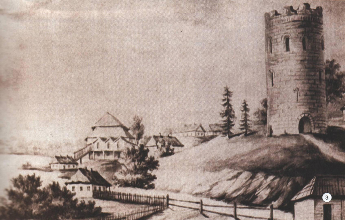 В книге «Древняя Польша», изданной в Варшаве в 1846 г., Михал Балинский описал кратко состояние Каменца и башни: «...теперь чахлое местечко, только один этот столп, без употребления уже почти пять веков, торчит своими руинами над массой низких халуп. Внутри этого почтенного памятника сохранились даже остатки дубовых лестниц Бог знает каких времен, но от середины высоты идут вверх ступени в стене; своды, хотя и продырявленные, как рыболовная сеть, однако еще держатся, под башней обширные подвалы» [Starozytna Polska Warszawa, 1846. T. III. C. 765.]. С Балинским осматривал и обмерял башню соседский помещик И.А. Херсонский, сделавший прекрасный рисунок. Описание Гродненской губернии М. Бобровского (1862 г.) также отмечает в башне каменные ступени и дубовые балки.