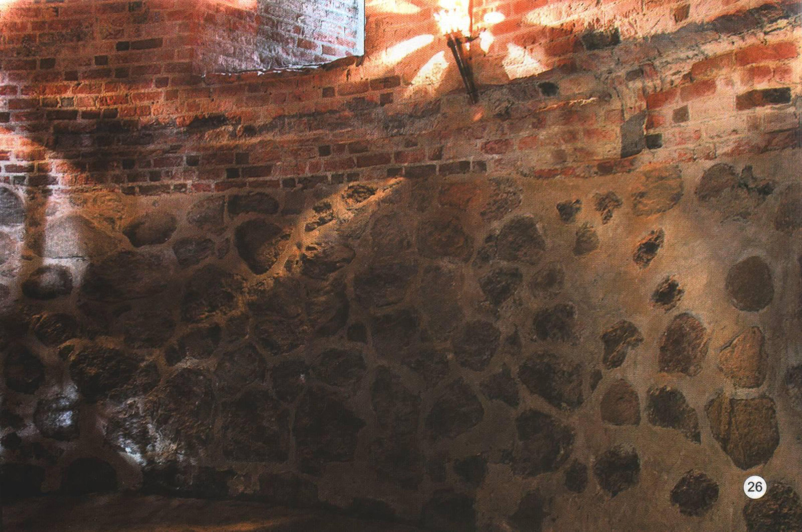 При археологическом исследовании М.А. Ткачевым был обнаружен под башней фундамент глубиной 2,3 м и диаметром около 16 м, до того неизвестный, сложенный из полевого камня с засыпкой чистым мелким песком [Ткачов M.A. 3aмкi Беларуси. Мн., 1977. С. 9—11.]. Башня была первоначально разделена внутри на пять ярусов дощатыми перекрытиями по деревянным балкам с различным их количеством. Между 2-м и 3-м ярусами перекрытие держалось на двух взаимно перпендикулярных рядах балок, в расчете на большую нагрузку. Неясно, когда над двумя нижними ярусами были возведены своды; скорее всего, на исходе готики, а не в XIX в., как полагал М.А. Ткачев. Он же утверждал, что башня до 1950-х гг. не белилась и не с нею связано название Беловежской пущи.