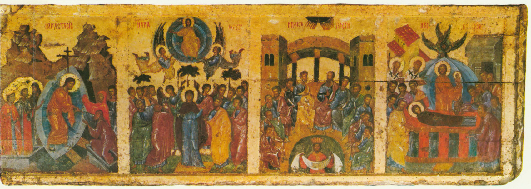 Художники владычной мастерской при создании «праздничного» ряда для Софии трудились «на паритетных началах», как обычно работали мастера того времени над монументальными росписями храмов. Такое творческое содружество немало способствовало созданию высокохудожественных, полных жизни произведений искусства.