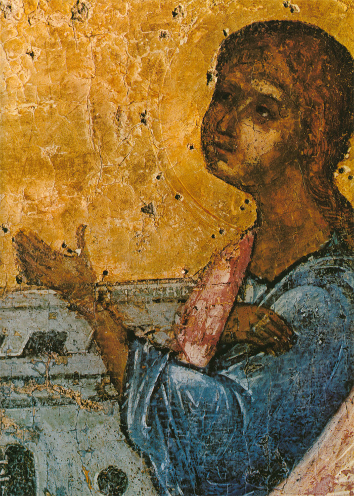 Окончательные выводы о строе и колорите, а также о времени создания двенадцати «праздников» стали возможными после раскрытия первоначальной живописи из-под слоя поновлений конца прошлого века. Со всего фриза был удален также серебряный басменный оклад XVI века. Это пришлось сделать, чтобы раскрыть золоченый фон каждой композиции и поля. Басмы искажали первоначальные очертания авторской живописи и ее колорит — краски иначе звучат на золотом фоне, чем на орнаментированном серебряном.