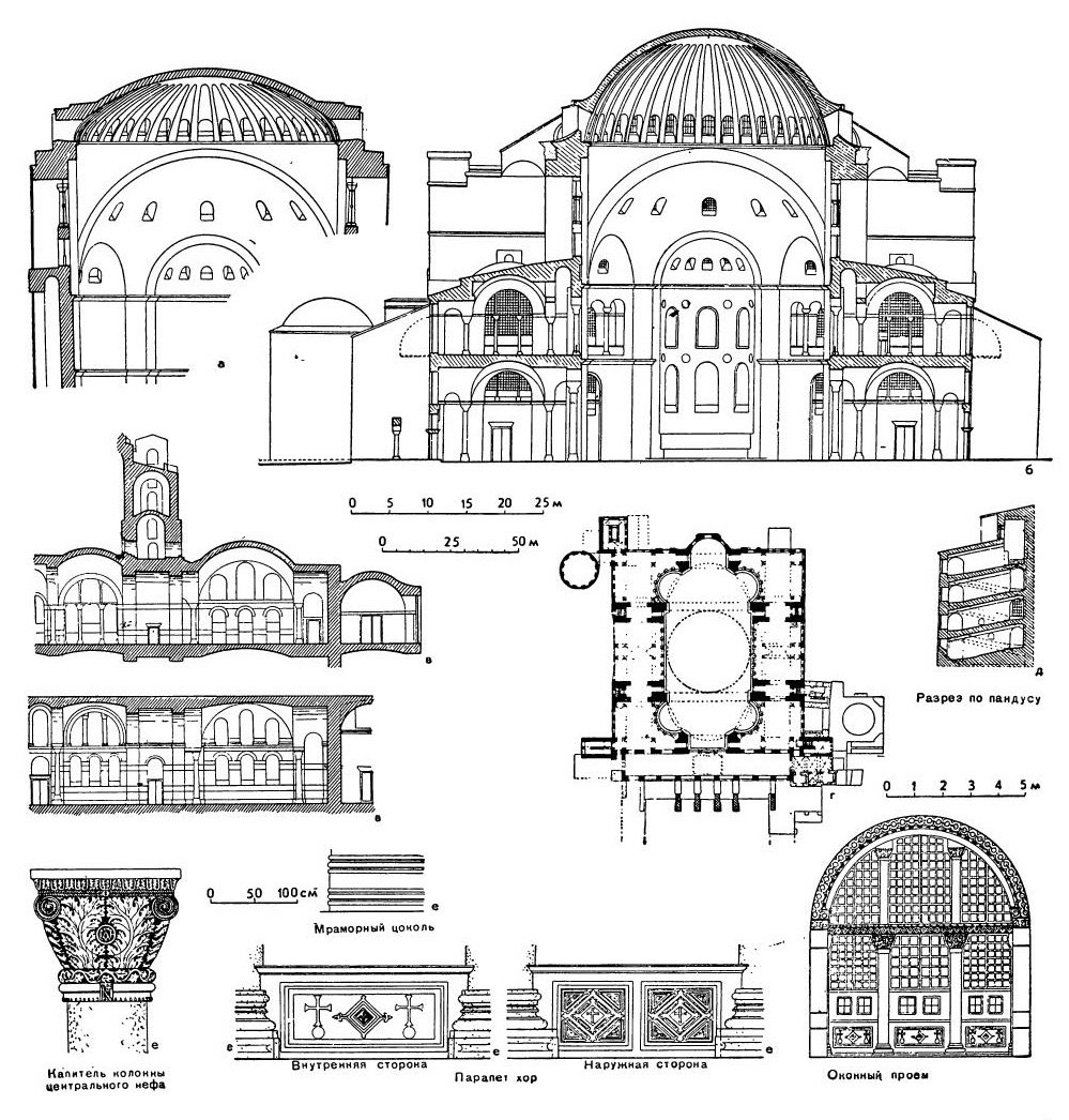 Именно на собор Софии в Константинополе 532—537 гг. следует обратить главное внимание при изучении византийского зодчества. Необходимо постараться проанализировать его по возможности разносторонне и углубленно.