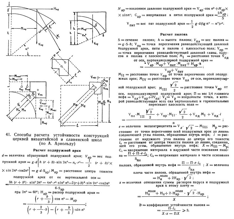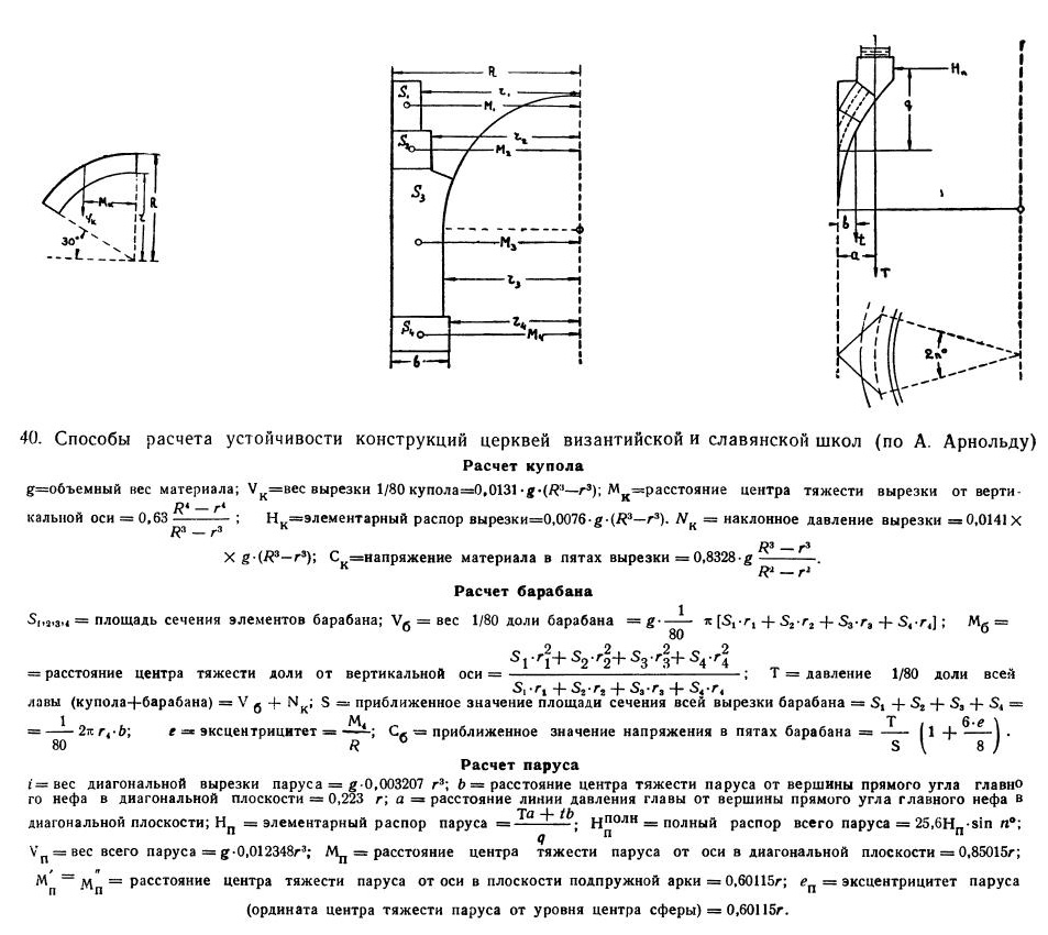 40-41. Способы расчета устойчивости конструкций церквей византийской и славянской школ (по А. Арнольду)