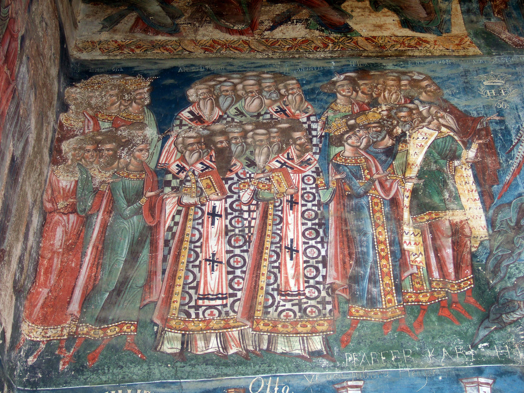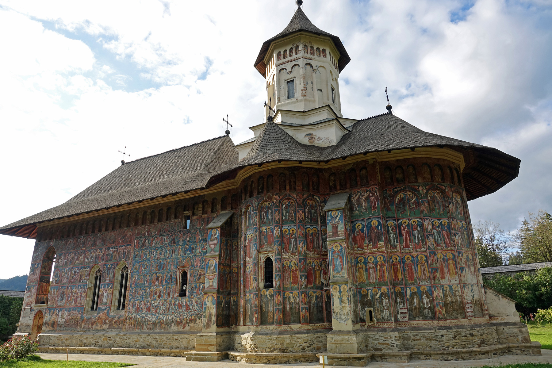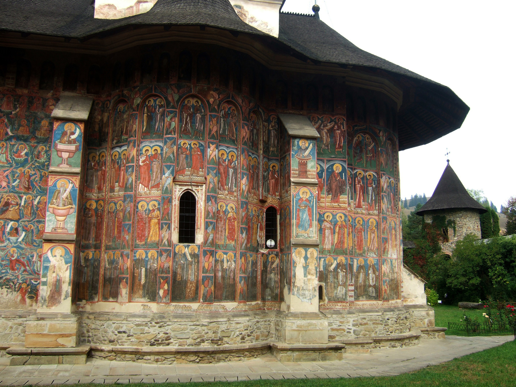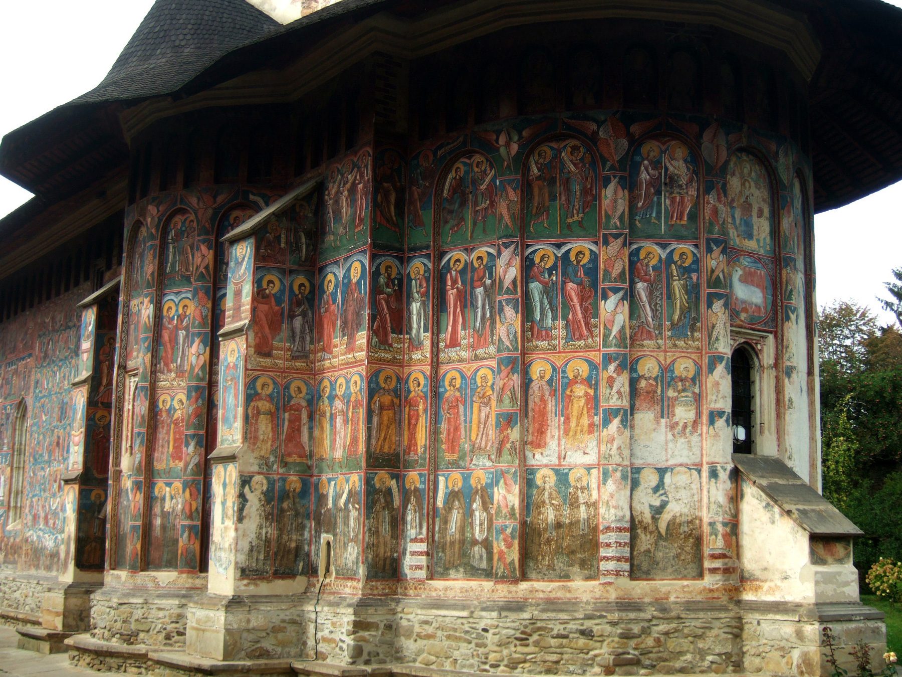 Здесь, как и в церкви Хумора, фрески фасадов сохранились почти полностью.
